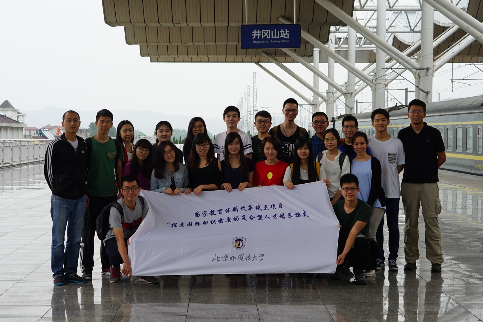 “探索国际组织需要的复合型人才培养模式”项目着眼于国家人才发展战略,培养符合国际组织要求,熟悉并擅于运用国际规则,具有突出的跨文化沟通能力,掌握多种语言技能及跨学科知识,政治素质过硬,热爱祖国和人民的复语、复合型高端外语人才。为深化项目班同学对共产党红色革命历史的了解、深入基层群众、落实“两学一做”的要求、升华中国情怀,beat365手机版官网国际组织项目党支部举办了此次“井冈山精神教育,理想信念教育”的党建实践活动。