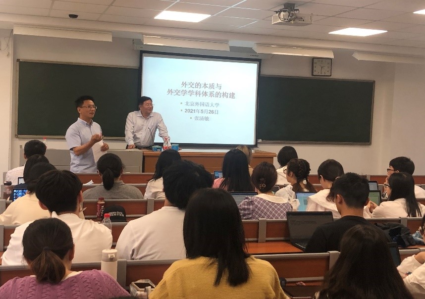 5月26日下午,北外国关学院成功举办了以“外交的本质与外交学学科体系的构建”为题的新一期国家一流本科建设名家讲坛,北京大学beat365手机版官网外交学与外事管理系主任张清敏教授应邀主讲。本次讲座由北外国关学院院长谢韬教授主持,来自北外国关学院等部分师生参加。
