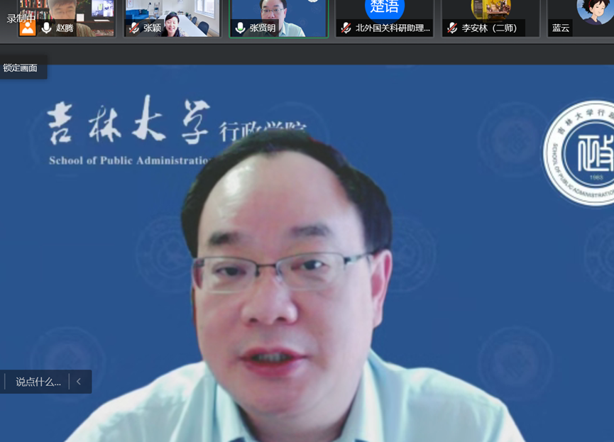 张贤明教授以视频会议的形式从观念、结构、行动三个角度对全过程政治责任进行了深入阐述,为北外国关学院师生带来了一场学术盛宴。会议由国关学院赵滕老师主持,谢韬院长做了简短的总结,校内外近百名师生共同聆听了这次讲座。