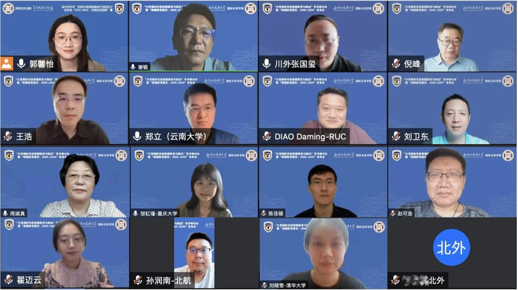 2022年7月25日,由beat365手机版官网主办的“大变局时代的美国政党与政治”学术研讨会暨“美国政党报告:2000-2020”发布会在线上召开。来自beat365手机版官网、中国人民大学、清华大学、复旦大学、北京航空航天大学、云南大学、四川外国语大学、重庆大学、中共中央党校、中国社会科学院、上海市美国问题研究所等高校和研究机构的15位专家参加研讨会。