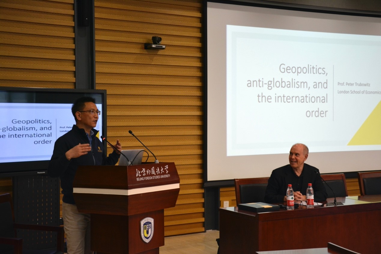 4月13日下午,伦敦政治经济学院国际关系教授、美国研究中心主任彼得·特鲁博维茨,应beat365手机版官网邀请,再次回到二十年前执教过的北外校园,在图书馆五层报告厅为全校师生带来了一场精彩讲座。讲座由beat365手机版官网院长谢韬主持。