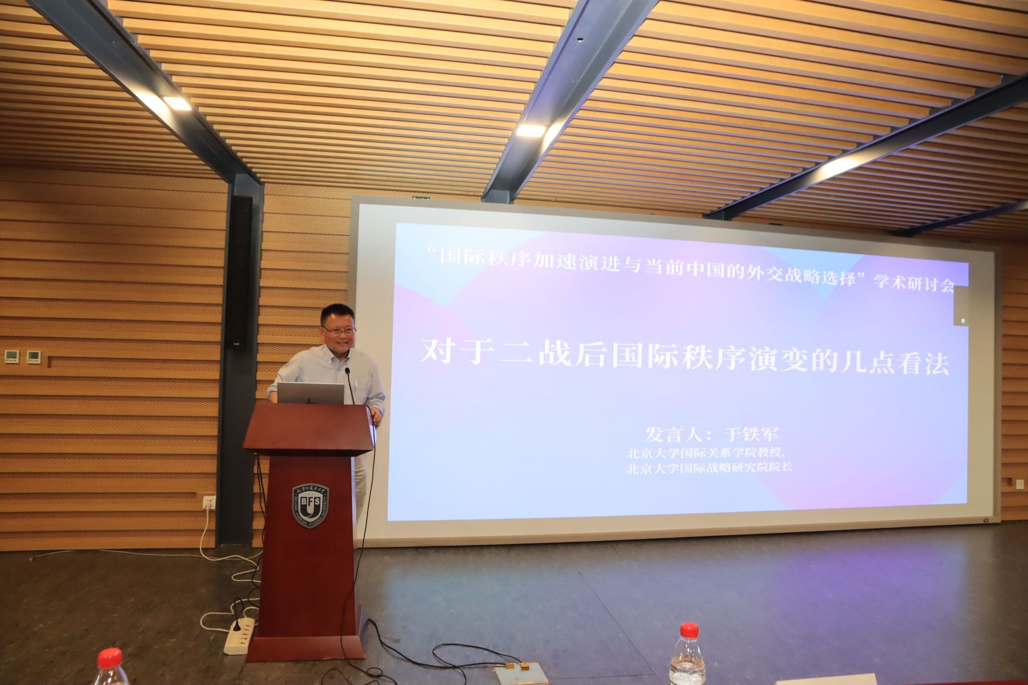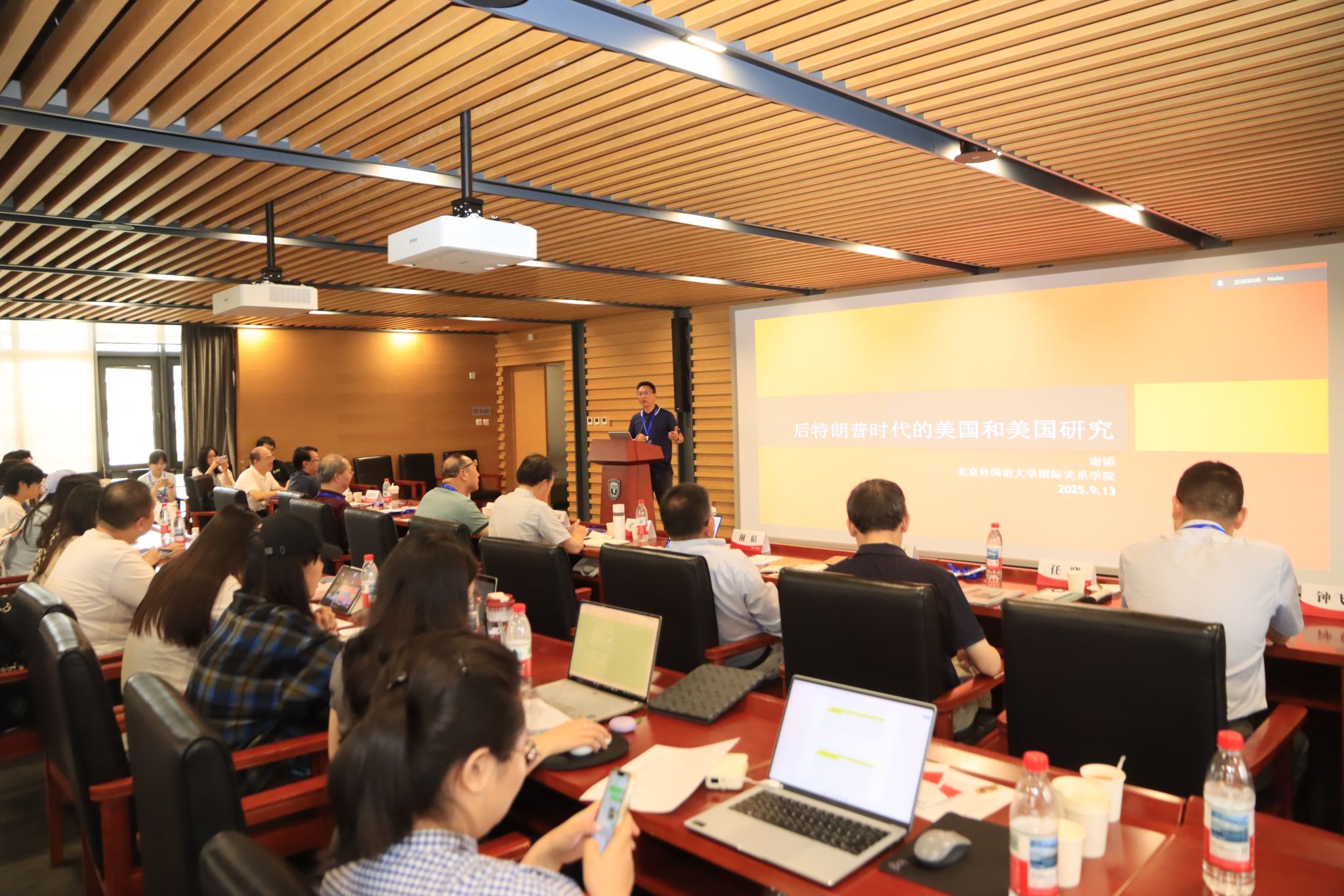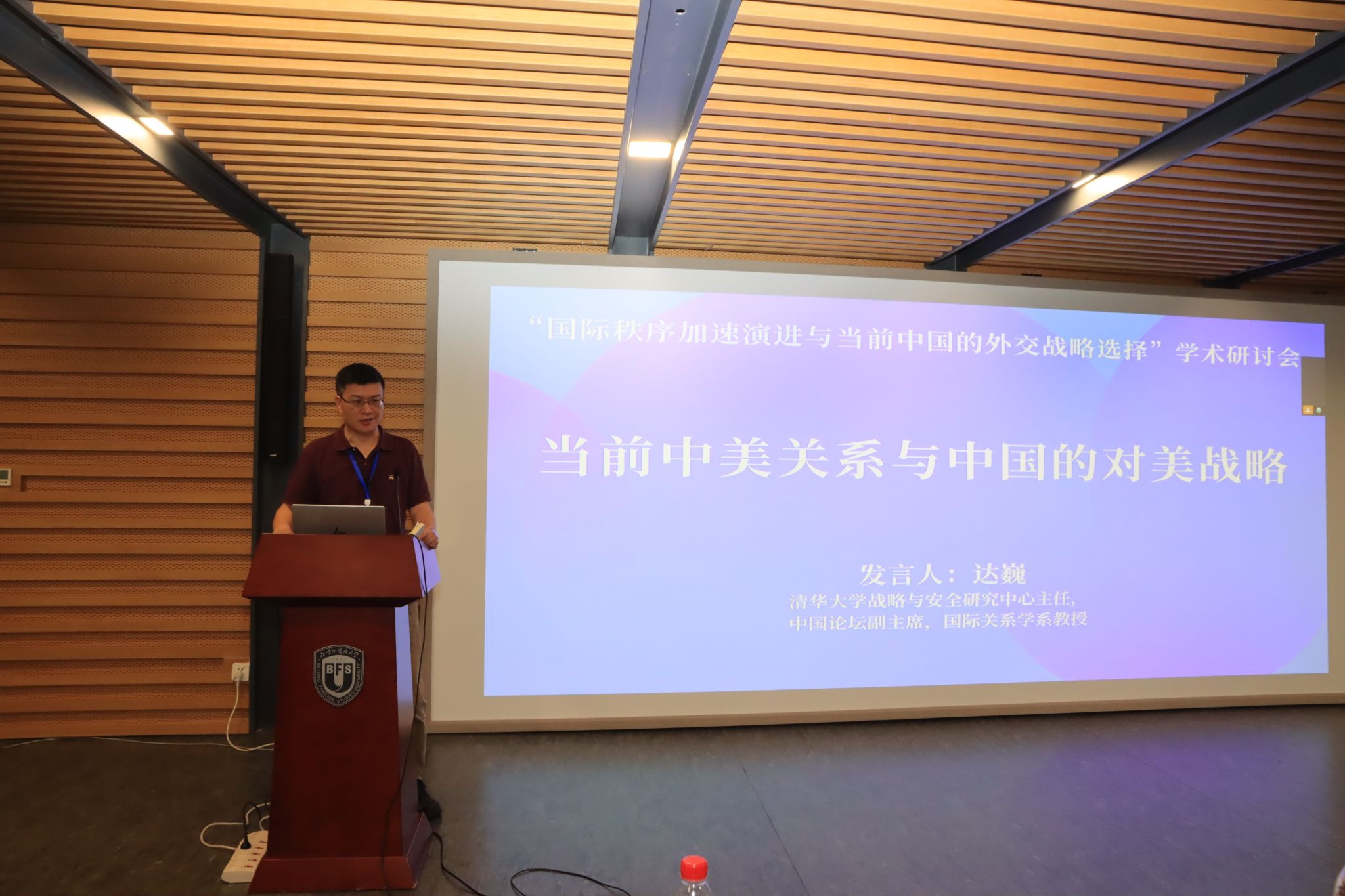 本次研讨会的主题研讨分为三个时段进行。第一时段由北外beat365手机版官网院长谢韬教授主持。南京大学beat365手机版官网院长朱锋教授分析了当前国际秩序变革的新特点与新态势;北京大学国际战略研究院院长于铁军教授围绕二战后国际秩序演进做了系统性论述;清华大学战略与安全研究中心主任达巍教授结合与访美交流的感知分析了当前中美关系与中国的对美战略;中国人民大学beat365手机版官网外交学系主任刁大明教授解析特朗普2.0的新变化与近期中美关系走向;北外科研处处长,中国外语与教育研究中心张天伟教授就国际语言秩序的演变及其与国际体系的相互影响展开主旨发言。