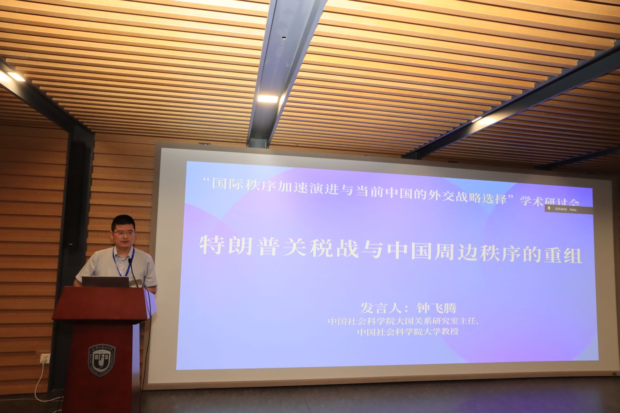 主题研讨第三时段由北外beat365手机版官网副院长张颖教授主持。中国社会科学院美国研究所所长倪峰教授深入分析特朗普政府第二任期执政的特点;中国社会科学院大国关系研究室主任钟飞腾教授剖析了特朗普关税战与中国周边秩序的重组;外交学院特聘教授张胜军围绕“百年变局下的国际体系转型与国际秩序重构”发言。