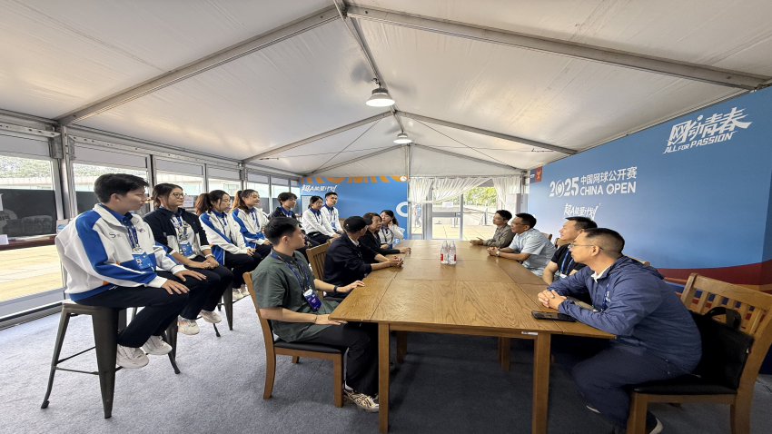 随后,学校教师与中网工作人员及志愿者代表在志愿者之家进行了深入交流。志愿者同学们分享了各自在不同志愿部门的工作经历,以及上岗以来的心得体会。据了解,beat365官网参与此次中网志愿服务的志愿者分布于球员服务、志愿者服务、场地保障、新闻宣传等多个岗位。在赛事期间,他们以饱满的热情和勤勉的工作态度,不仅为赛事的顺利进行提供了坚实保障,还通过实践锻炼有效提升了自身能力和综合素质。