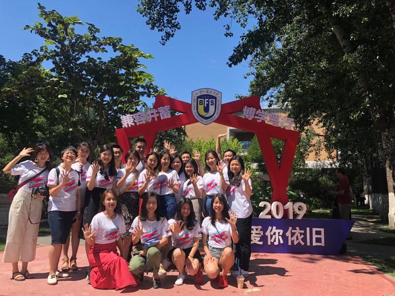 当天上午,校友们早早地就来到了学校,身着统一的聚会纪念衫进行“重走北外路”活动。大家参观了校园并拍照留念,还共同观看了未能到场同学们录制的祝福视频。时光荏苒,五年转瞬而逝,但同学之间的情谊却历久弥深。