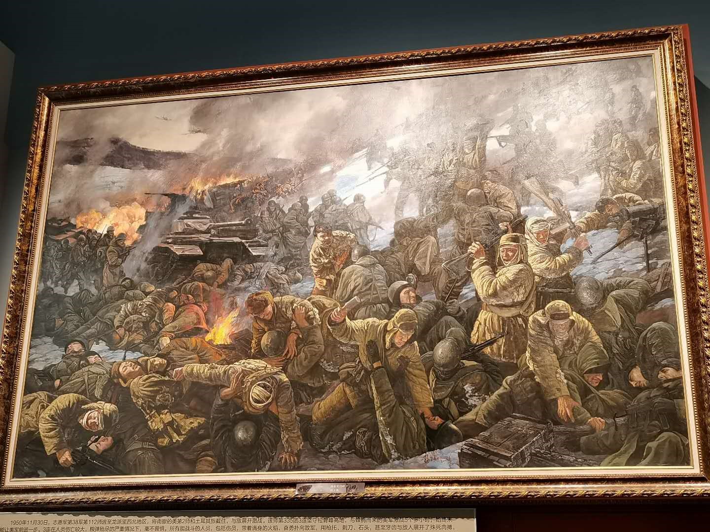 志愿军战士的装备,坚守松骨峰的油画,鏖战长津湖的景观……在展厅现场,参观的同学们被这些丰富的历史文物、照片、景观深深吸引和感染。“雄赳赳,气昂昂,跨过鸭绿江……”,这首歌,七十年唱来,依然志气高昂;杨根思、邱少云、黄继光……这些人,七十年念来,依然形象鲜活。七十年,历史总会在某个转角流露出一丝余温、一星光芒,昭示着人们,正气长存、精神不朽。