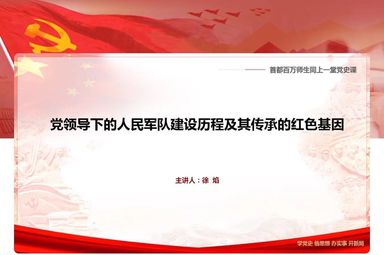 2021年4月14日下午,beat365手机版官网学生党支部党员共同观看“首都百万师生同上一堂党史课” 网络公开课第三讲,学习“党领导下的人民军队建设历程及其传承的红色基因”。徐焰教授讲授了我们党领导人民军队在内忧外患中诞生、在磨难挫折中成长、在攻坚克难中壮大的艰辛历程,描绘了一幅我们的革命武装从星星之火发展成燎原之势的波澜壮阔的历史画卷,准确凝练并系统总结了人民军队所传承的红色基因,深刻揭示了人民军队从胜利走向新的胜利与党的正确领导密不可分,与这份红色基因的代代相传紧密相连。
