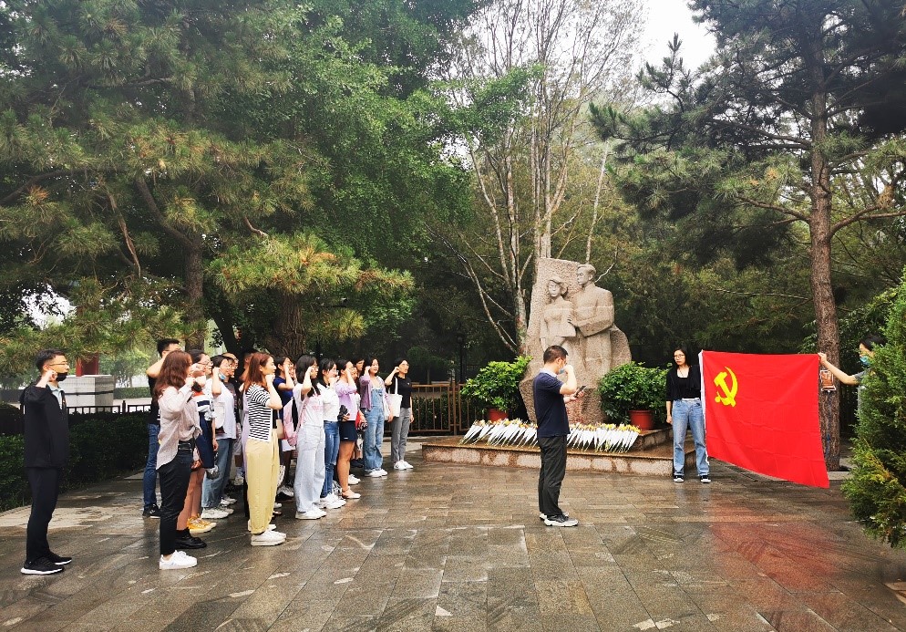 本次活动共有四项,一是向高君宇和石评梅同志墓敬献花;二是由康晓老师带领新的预备党员宣誓,老党员重温入党誓词;三是全体党员绕高君宇烈士墓一周,瞻仰革命同志故居遗址;四是参观慈悲庵中国共产党早期北京革命活动纪念馆。