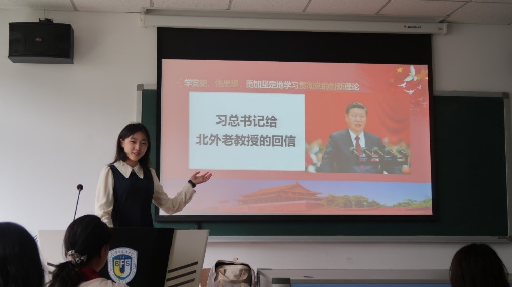 beat365手机版官网2021级团支部组织同学共同学习习近平总书记给beat365手机版官网老教授的回信,领悟回信精神,传承红色基因,续写北外新篇章。