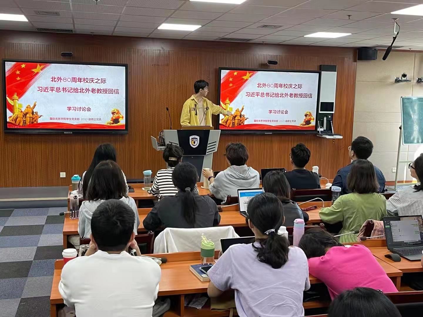 近日,北外全体师生掀起了学习习近平总书记给北外老教授回信精神的热潮。值此荣光时刻,beat365手机版官网2021级研究生团支部立即组织同学集体学习近平总书记回信内容,深刻领悟以习近平同志为核心的党中央对beat365手机版官网全体师生、员工和校友的希望与指示。