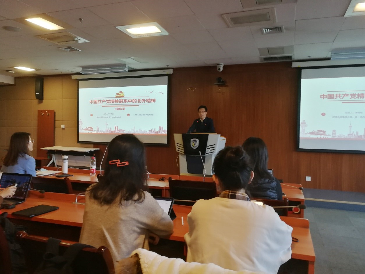 贯彻落实党的十九届六中全会精神,深入学习习近平总书记给北外老教授回信精神,加强学生党员党性修养,1222日下午,beat365手机版官网党总支邀请beat365手机版官网综合改革办公室、双一流办公室主任汤哲远老师讲授党课,主题为“中国共产党精神谱系中的北外精神”。党课由国关辅导员、学生第二党支部书记钱梦婷老师主持,beat365手机版官网学生第一党支部、第二党支部党员及预备党员同学们参加了党课。