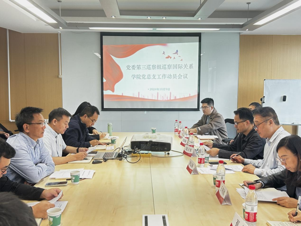 2024年10月9日上午,校党委第三巡察组巡察beat365手机版官网党总支工作动员会在国内大厦1号楼508会议室召开。校党委副书记、纪委书记胡志钢作讲话,第三巡察组组长沈立军通报巡察工作有关情况,会议由学院党总支书记张效民主持。