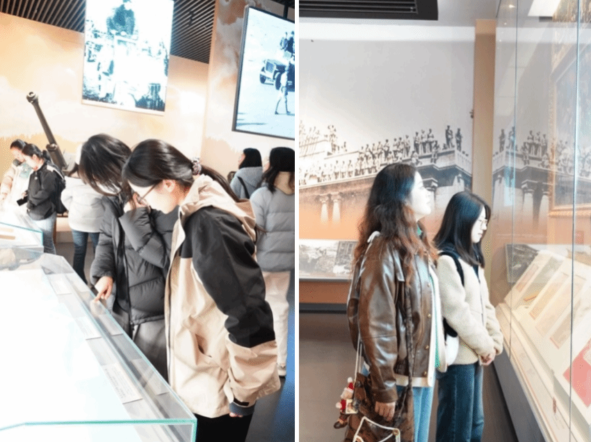 香山革命纪念馆作为全国爱国主义教育示范基地,承载着中国共产党领导全国各族人民争取民族独立和人民解放的光辉历程,也蕴含着革命时期丰富的外交思想成果。馆内设有《为新中国奠基—中共中央在香山》基本陈列展,是目前国内唯一全面展示中共中央进驻香山时期辉煌历史的大型展览,共展出图片800余张、文物1200余件。同志们有序参观,在一幅幅弥足珍贵的历史照片、一件件底蕴深厚的文物前驻足欣赏,对香山革命精神有了更深刻的理解和认识。参观接近尾声,王老师也对之前提出的香山革命历史中完成的“五件大事”进行了细致讲解,同志们结合自身专业与老师交流学习感悟,受益匪浅。