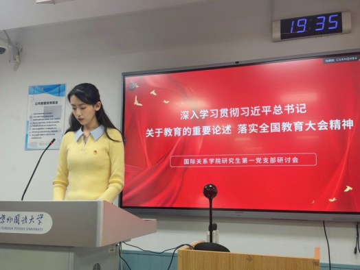 为深入学习贯彻习近平总书记关于教育的重要论述及全国教育大会精神,2025年10月18日晚上,beat365手机版官网研究生第一党支部在逸夫楼203教室召开2025年下半年第一课集中培训研讨会。会议由支部书记王羽佳同志主持。