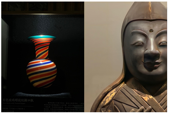 从本次国博和故宫博物院的联展当中,我对中国“和合”文化有了更深的了解。和合是中华文明源远流长的重要文化特征。在中国广袤的土地上,华夏民族在历史中交融磨合,形成了共同的民族认同。如本次展出的“十二辰”系列展品,十二生肖是当代国人习以为常的文化传统,但其实是在少数民族的动物崇拜和中原文化的干支纪年法的共同基础上形成的。再以清乾隆皇帝的龙袍为例,龙袍上的纹样有十二章纹等,十二章纹缘起于舜禹时代,是古人天人合一思想的体现,在儒家经典《尚书》中有记载。乾隆作为满族血统的帝王,其在生活细节等上体现的是华夏民族共同的文化传承,形象地诠释了“和合共生”。此外,本次联展对中外文化交流中的“和合共生”也有许多展现,精美的瓷器、西洋风格的鼻烟壶、玻璃画……充分表明中华民族对外邦亦是“和合共生”的开放态度。