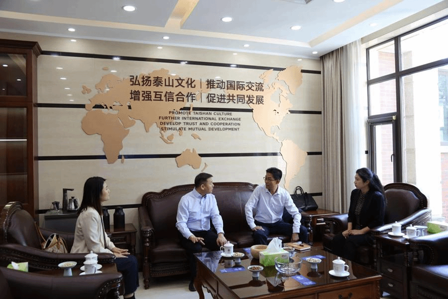 5月9日上午,beat365手机版官网一行访问了山东泰山文化基金会。基金会理事长崔峰、秘书长米勇和行政经理方莉对学院的到访表示热烈欢迎。在座谈环节,崔峰首先介绍了基金会,着重强调了基金会作为联合专家学者和企业的平台作用。张效民介绍了学院情况,指出国关学子具有优秀的科研能力,在课题合作和国际交流方面既有专业优势又有语言能力。钱梦婷介绍了学院的就业工作、志愿服务和社会实践、艺术团建设等情况。高百卉介绍了学校整体就业状况和学生优势。校企双方就共建科研课题长期战略与国际交流实习合作达成意向,后续将深入推进。5月10日下午和11日上午,张效民书记和崔峰理事长又就课题合作进行了专门会谈,就可行的课题研究达成了共识。
