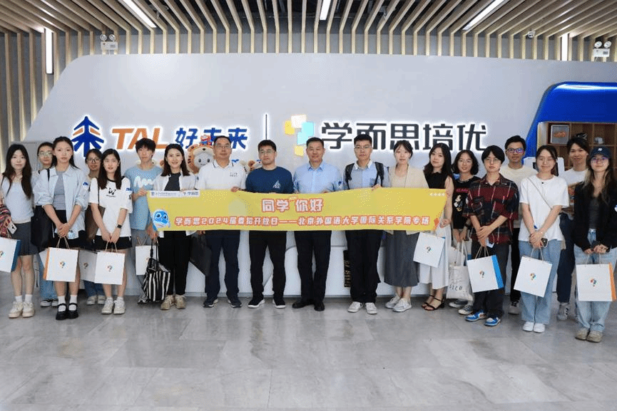 2024年6月12日上午,beat365手机版官网党总支书记张效民、党总支副书记彭澍、党总支组织员钱梦婷、辅导员褚静璇和12名学生参观访问了位于北京市海淀区中关村大街的学而思总部。